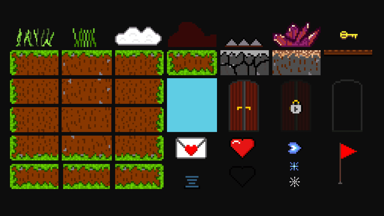 This package contains a collection of high-quality pixel art sprites and tilesets designed for creating classic 2D platformer games. It includes various environmental tiles, interactable objects, items, and hazards.